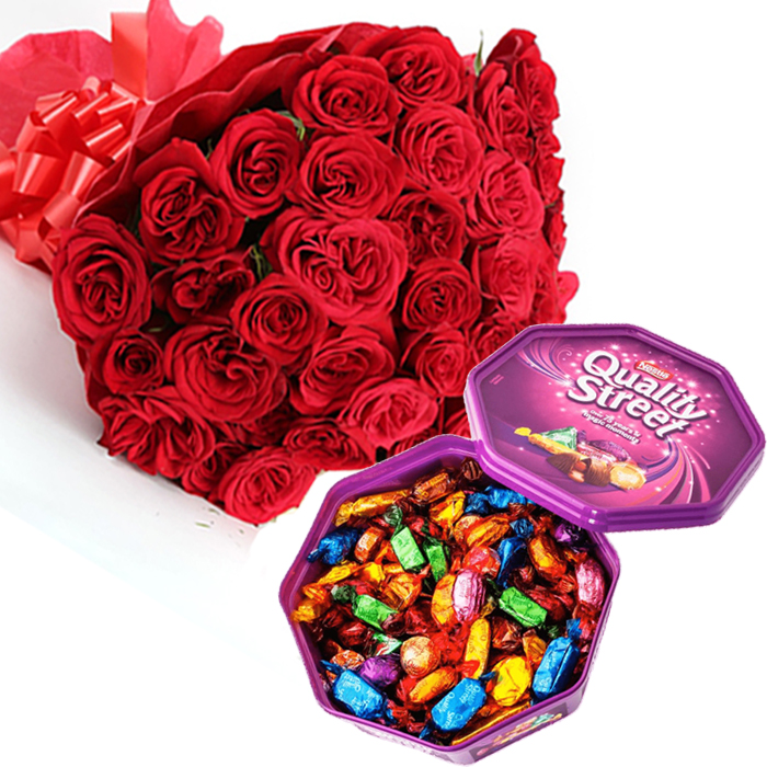 Mackintosh’s collection in tin box called Quality Street. Great selection of 14 different hard and soft sweets and toffees covered with yummy chocolates. Each piece individually wrapped in color foils and has a unique taste. Approx 240 gms.
